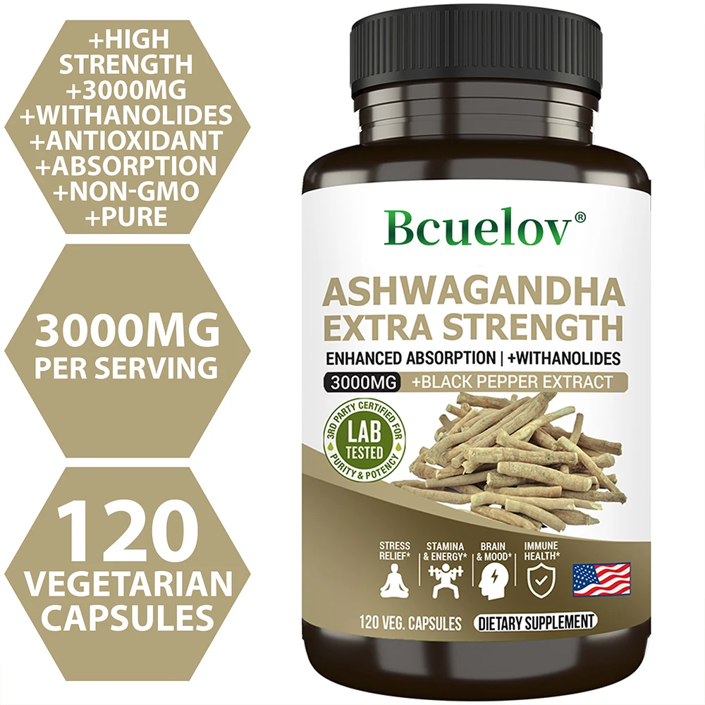 Ashwagandha Extract 3000 Mg Root Anti-Stress Anxiety Supplement - Supports Better Sleep, Mood, Energy, 120 Capsules