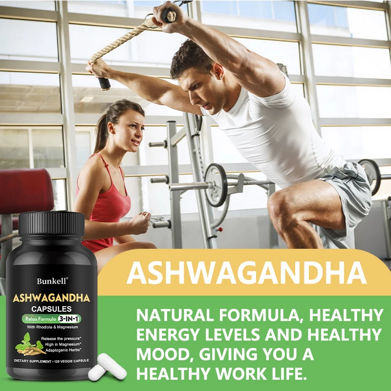 Ashwagandha + Magnesium Capsules - Provide Energy, Strength, Vitality, and Performance for Men and Women, and Promote Sleep.